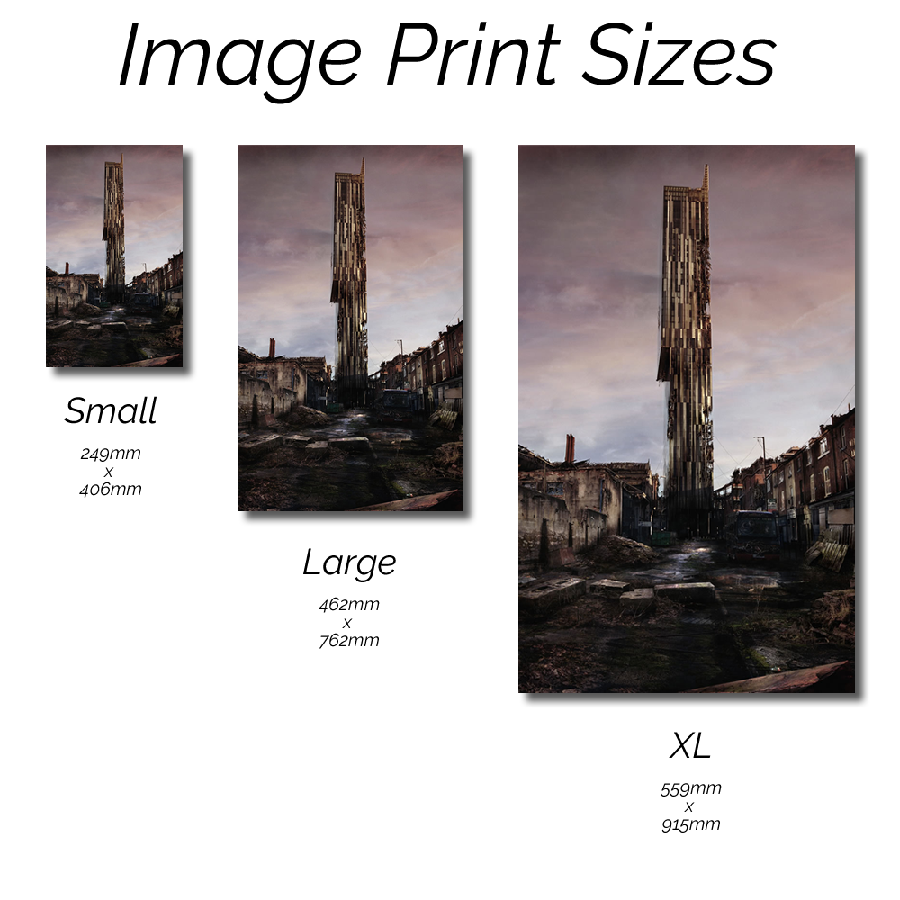 As you explore this artwork, you will be transported to a world where humanity has been pushed to the brink of extinction. The once bustling city of Manchester is now a ghost town, its streets barren and its buildings reduced to rubble. The only sign of life is the Beetham Tower, which remains as a stark reminder of the world that once was.