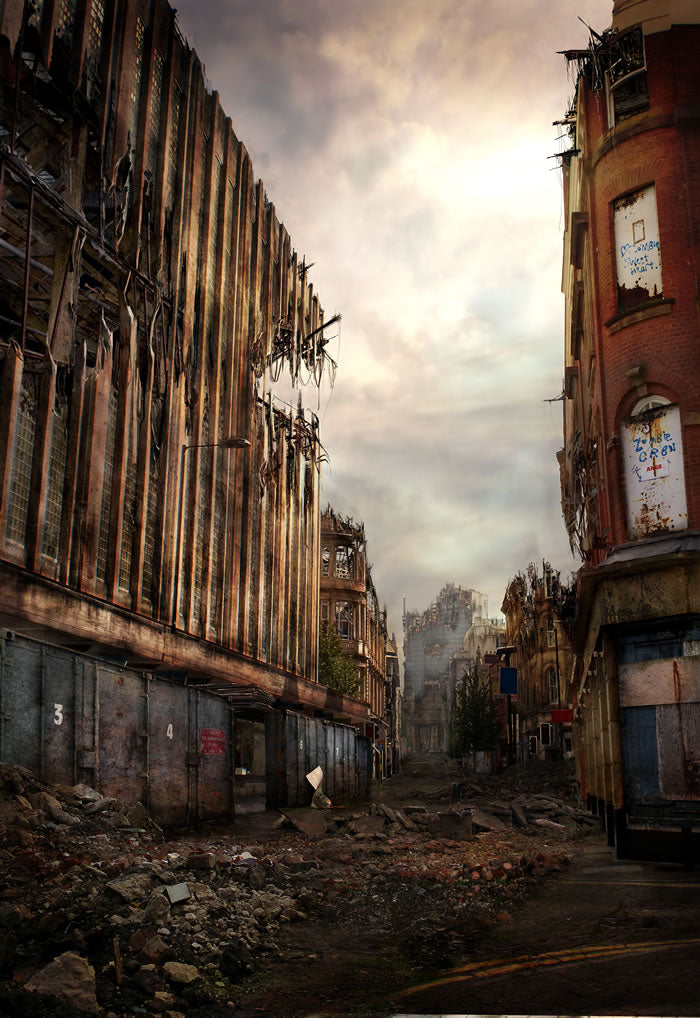 Welcome to the official website featuring the breathtaking post-apocalyptic artwork of James Chadderton! This stunning piece is based on Deansgate, Manchester and showcases a world that has been drastically changed by an unknown event.