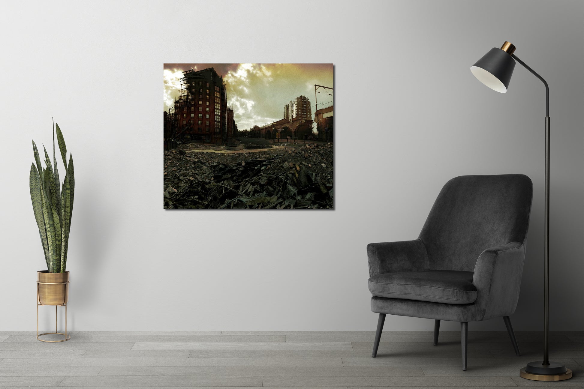 The post-apocalyptic style has become increasingly popular in recent years, and one artwork that captures this style is the mixed medium piece based on the iconic Hacienda nightclub in Manchester, created by artist James Chadderton.