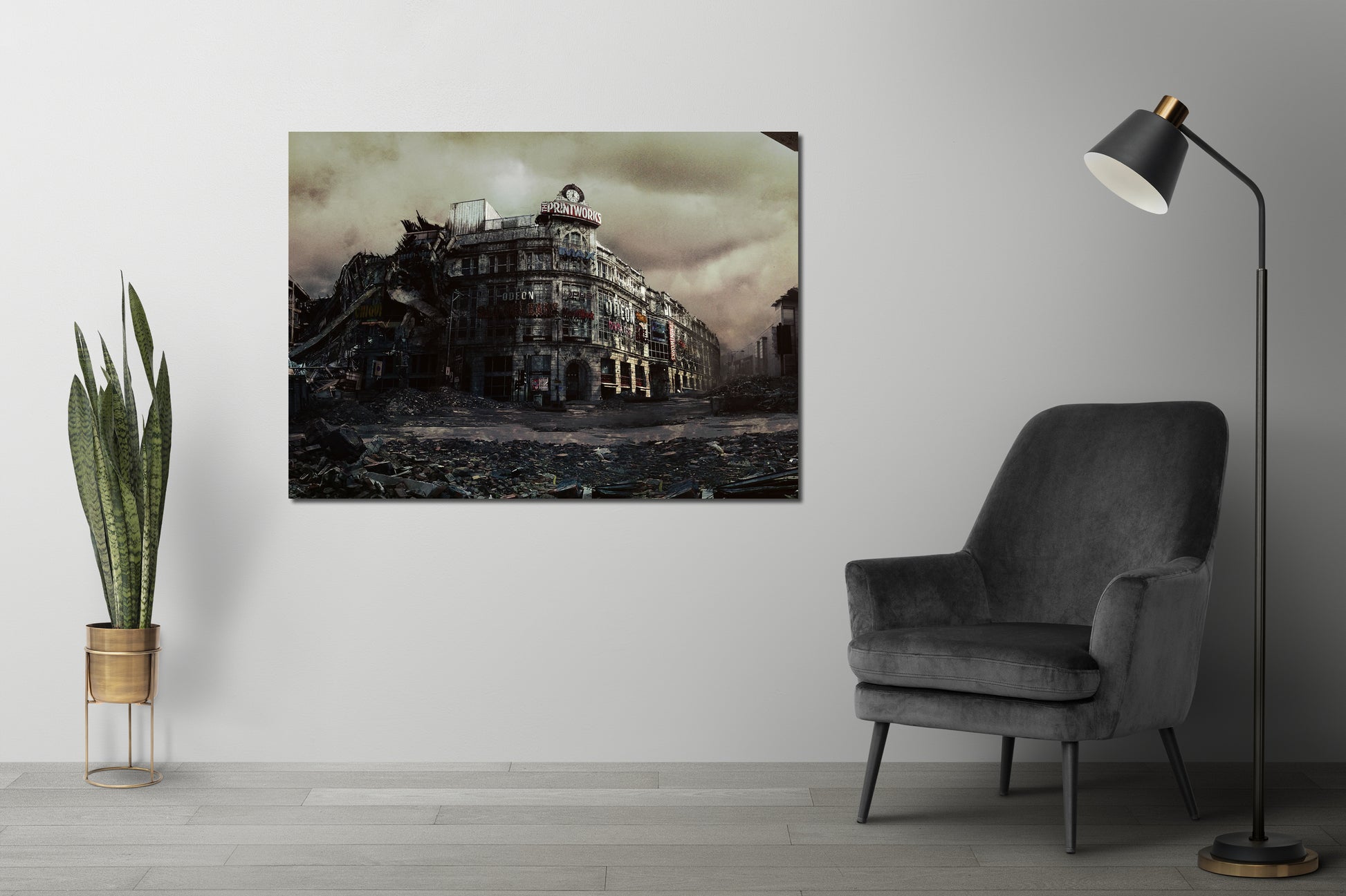 Welcome to our website dedicated to showcasing the stunning post-apocalyptic artwork of James Chadderton! In particular, we are excited to share with you his incredible mixed-medium painting that takes inspiration from the iconic Printworks Manchester.