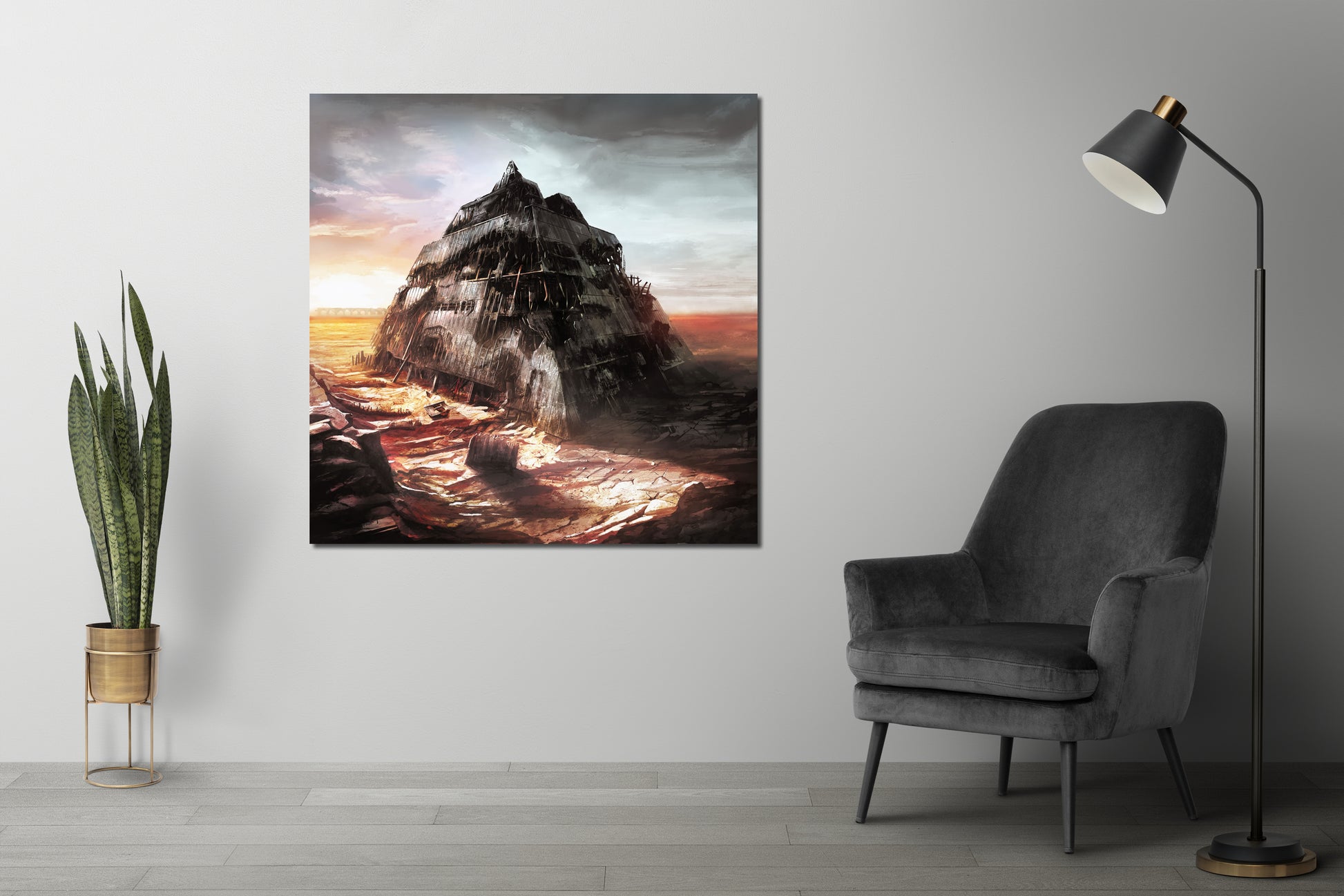 Chadderton's artwork captures the essence of a world ravaged by some unknown catastrophe. The painting portrays the pyramid building as a desolate, empty structure, standing alone in a barren landscape. The painting is done in the mixed medium style, combining elements of both traditional and digital art to create a truly unique and captivating image.