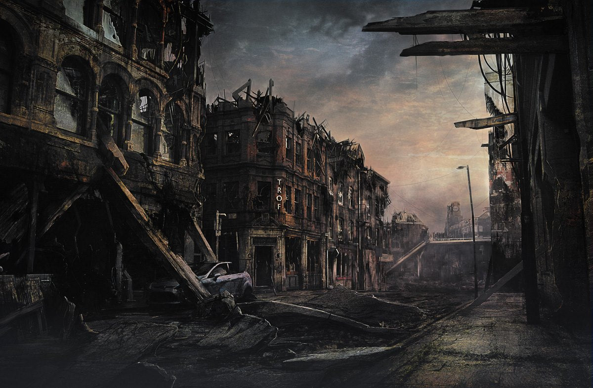 Welcome to the website showcasing James Chadderton's stunning post-apocalyptic artwork, featuring the Northern Quarter in Manchester as its backdrop. The centerpiece of this breathtaking painting is the iconic Trof bar, which serves as a visual anchor for the entire piece.